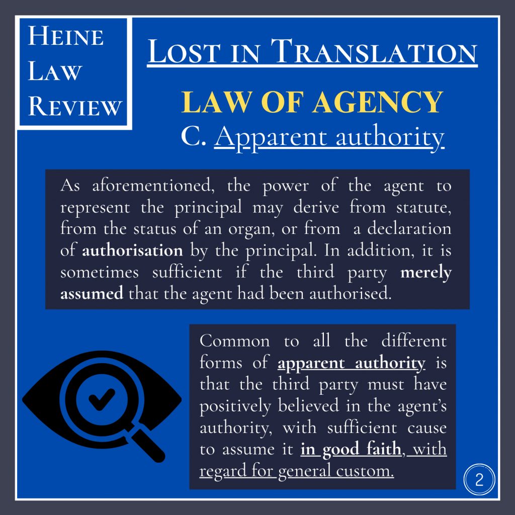 As aforementioned, the power of the agent to represent the principal may derive from statute, from the status of an organ, or from a declaration of authorisation by the principal. In addition, it is sometimes sufficient if the third party merely assumed that the agent had been authorised. Common to all the different forms of apparent authority is that the third party must have positively believed in the agent’s authority, with sufficient cause to assume it in good faith, with regard for general custom.
