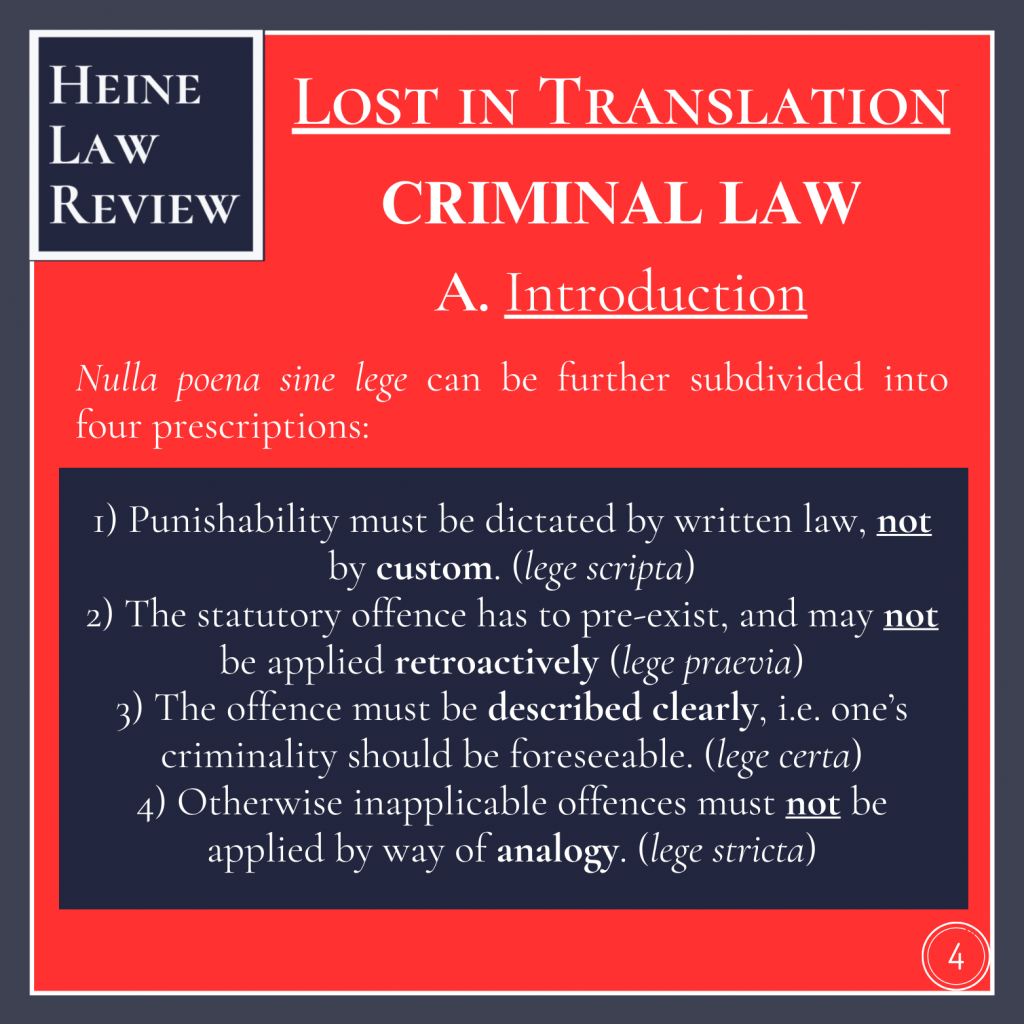 4) Otherwise inapplicable offences must not be applied by way of analogy. (lege stricta)