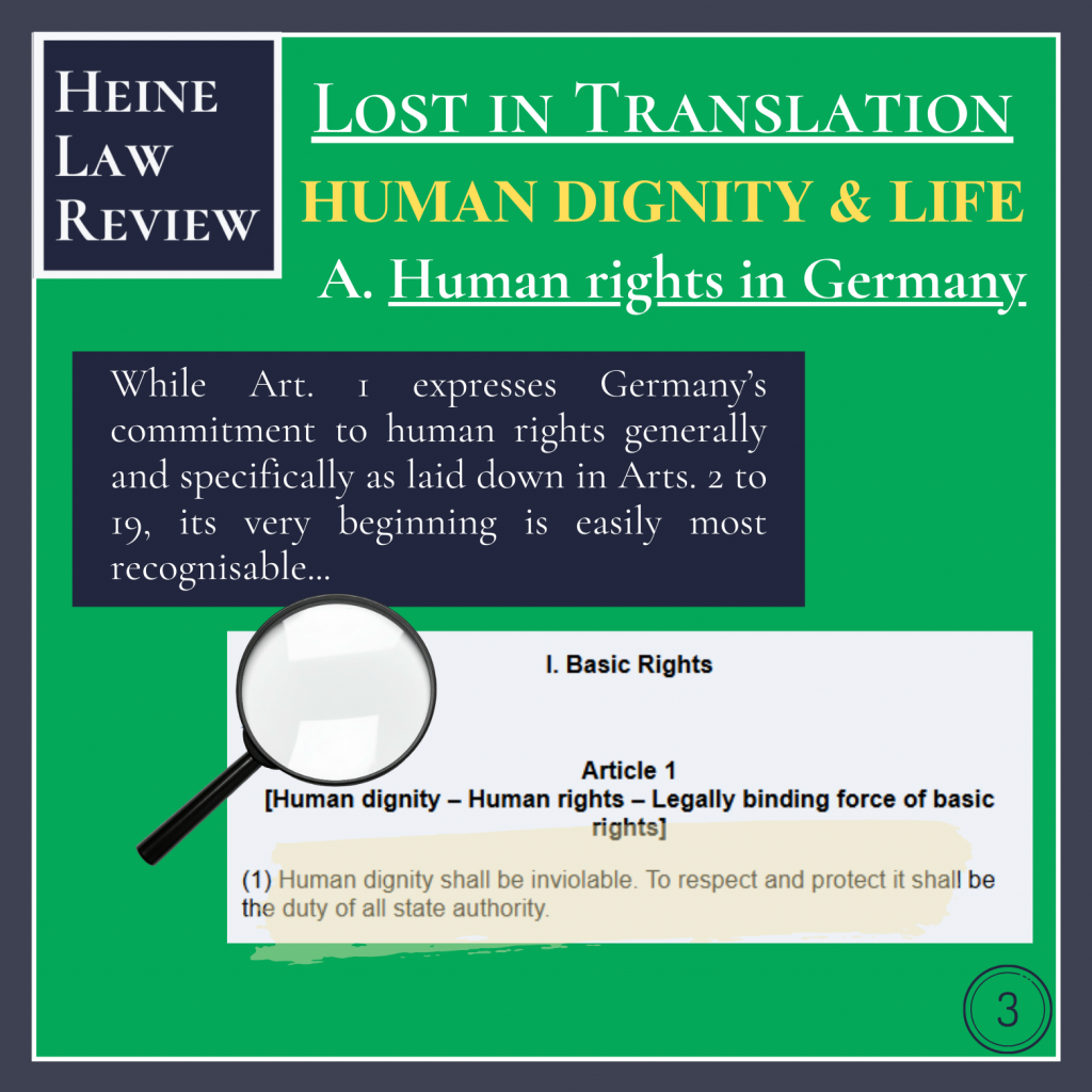 While Art. 1 expresses Germany’s commitment to human rights generally and specifically as laid down in Arts. 2 to 19, its very beginning is easily most recognisable…