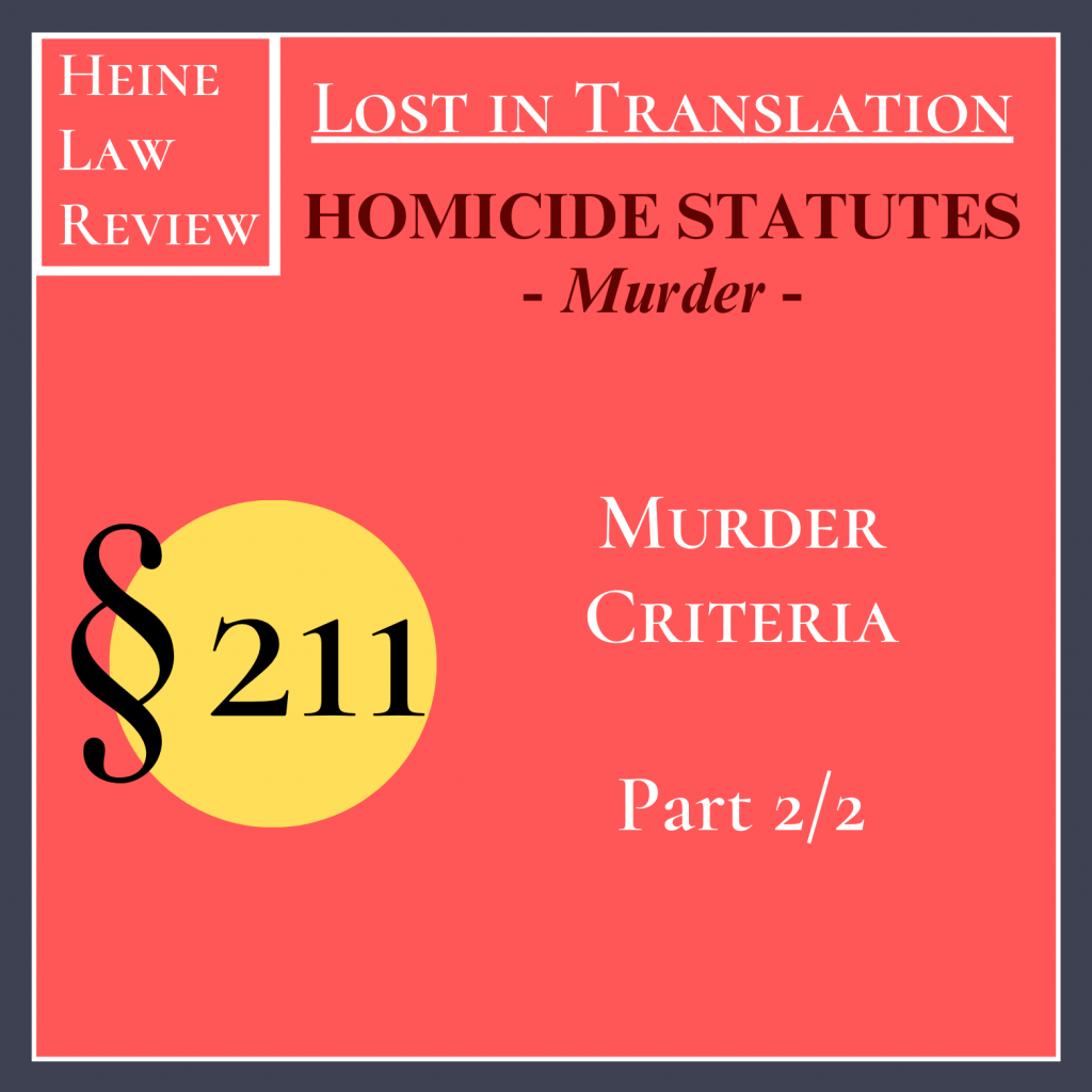 We are finishing up our brief explanation of the nine murder criteria in s. 211 of the German Criminal Code. For the first four, see Part 2! Up next: The objective as well as the remaining two subjective murder criteria…