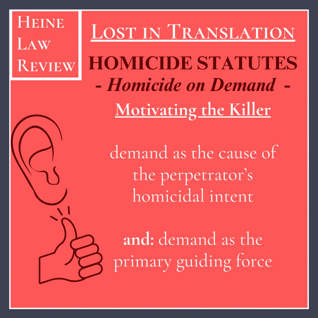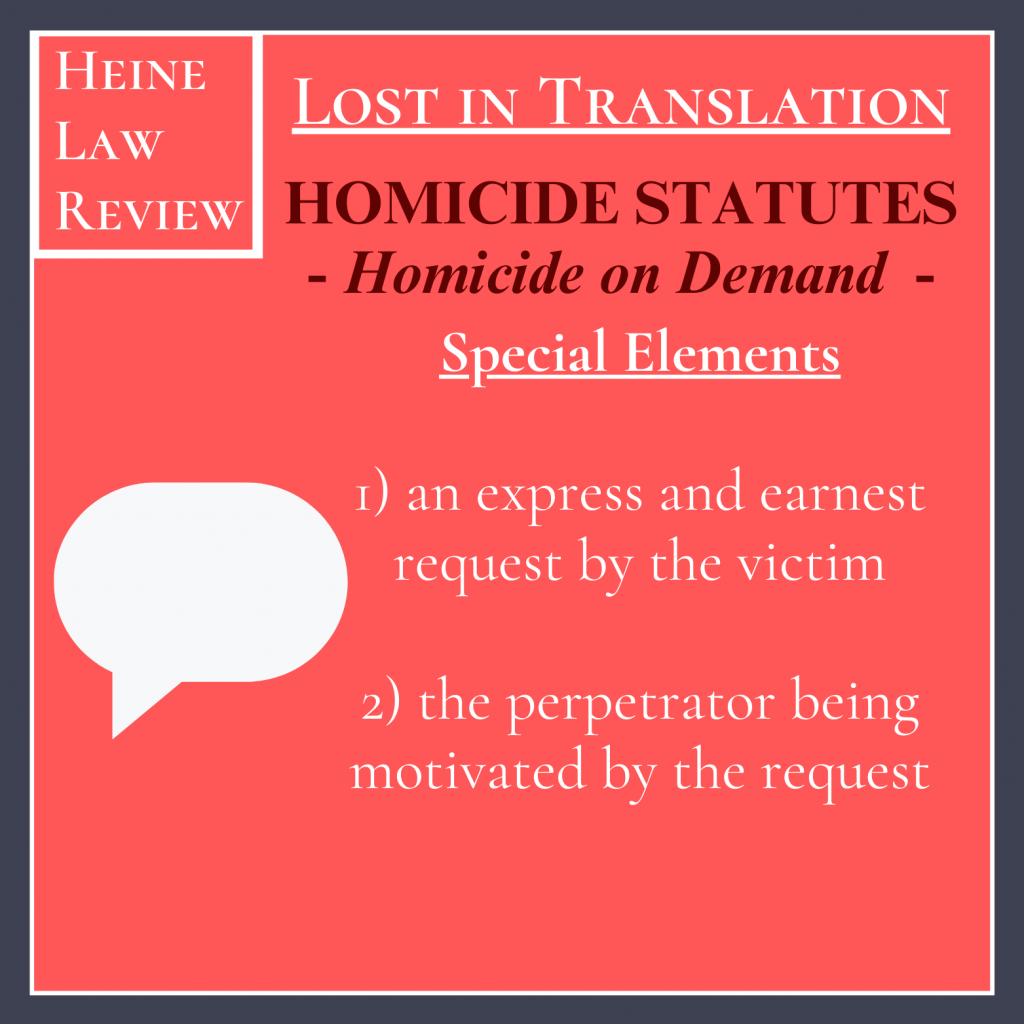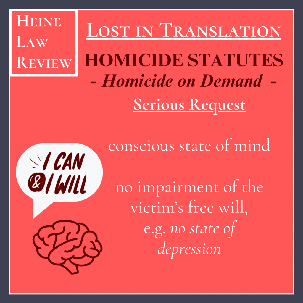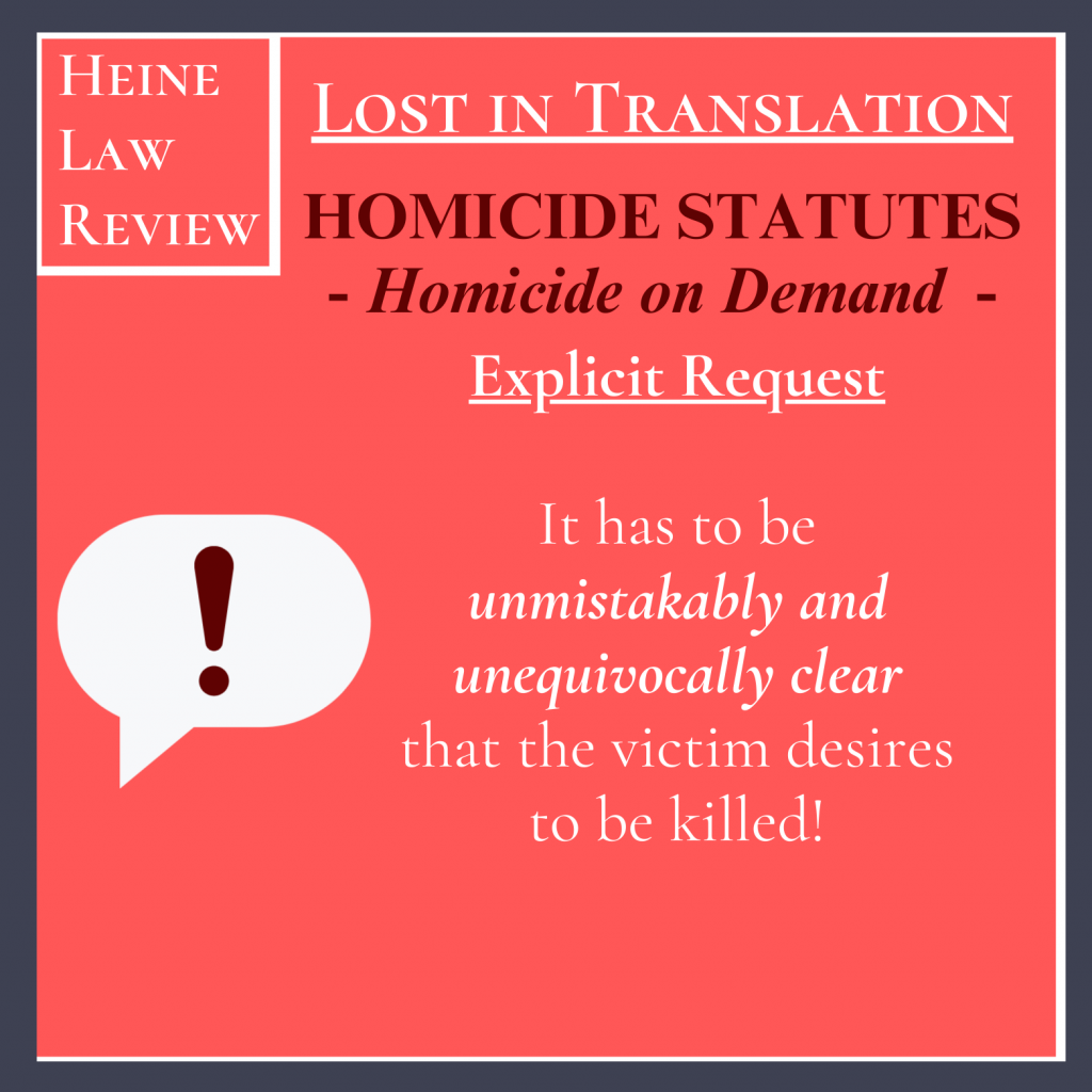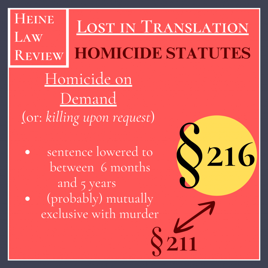 S. 216 of the German Criminal Code poses another delict that can be characterised, as opposed to s. 211, as a privileged instead of a qualified form of s. 212. In cases of a killing on request or on demand (Tötung auf Verlangen), the sentence is lowered to anywhere between 6 months and 5 years. If the elements of s. 216 are fulfilled, this is likely to preclude the application of both s. 212 and s. 211!