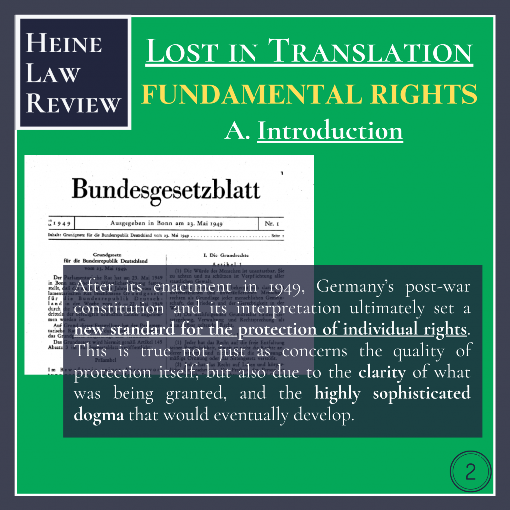 After its enactment in 1949, Germany’s post-war constitution and its interpretation ultimately set a new standard for the protection of individual rights. This is true not just as concerns the quality of protection itself, but also due to the clarity of what was being granted, and the highly sophisticated dogma that would eventually develop.