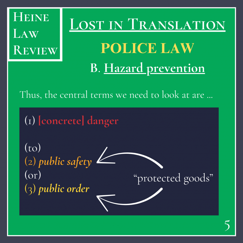 Public safety is concerned if, in turn, at least one of three protected goods is threatened: