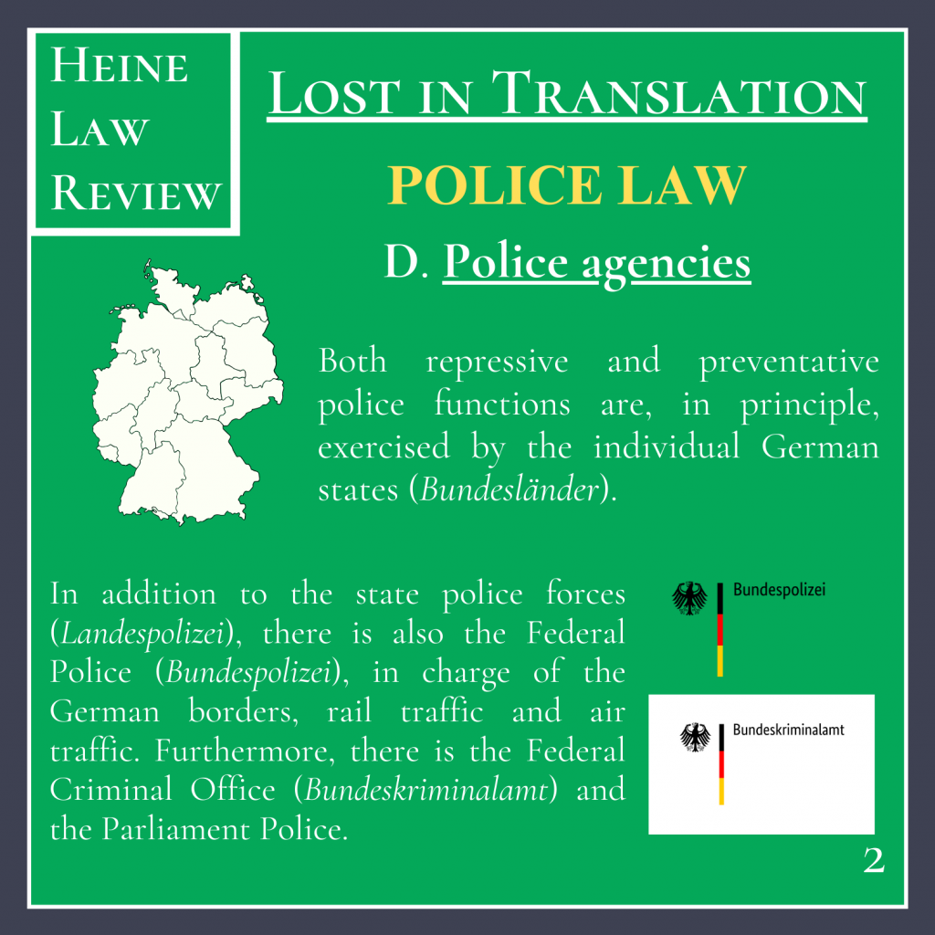 Both repressive and preventative police functions are, in principle, exercised by the individual German states (Bundesländer).