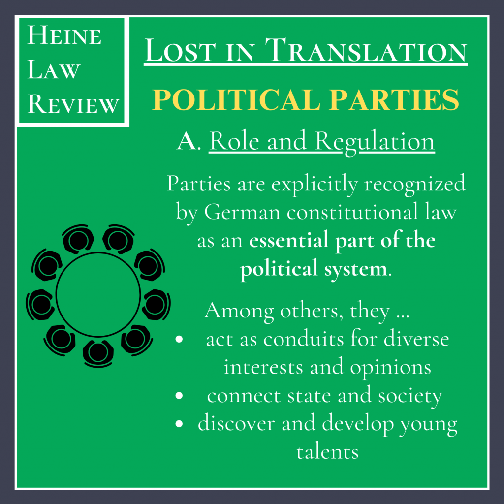 Parties are explicitly recognized by German constitutional law as an essential part of the political system.