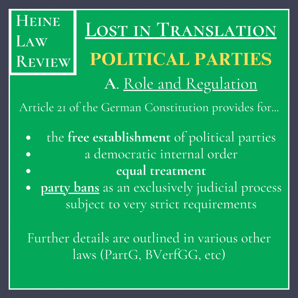 Further details are outlined in various other laws (PartG, BVerfGG, etc).