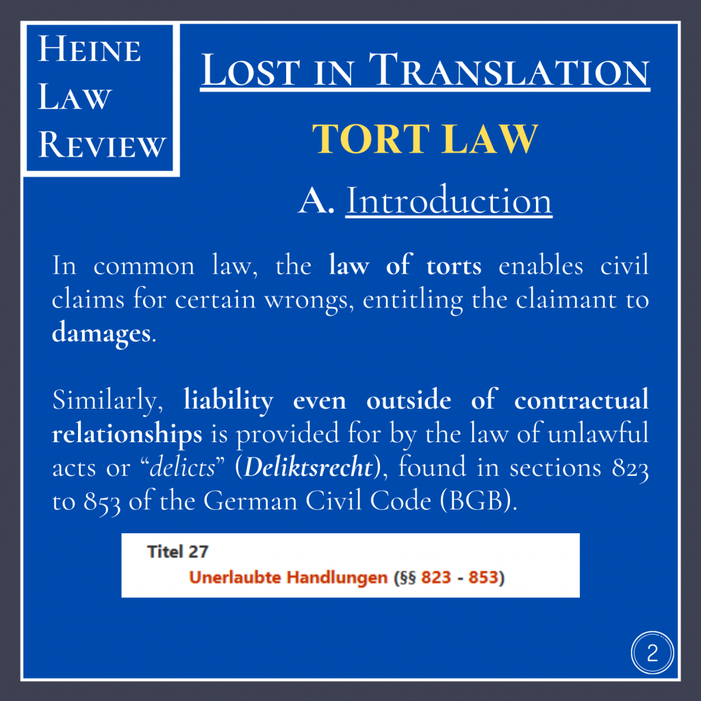 Similarly, liability even outside of contractual relationships is provided for by the law of unlawful acts or “delicts” (Deliktsrecht), found in sections 823 to 853 of the German Civil Code (BGB).