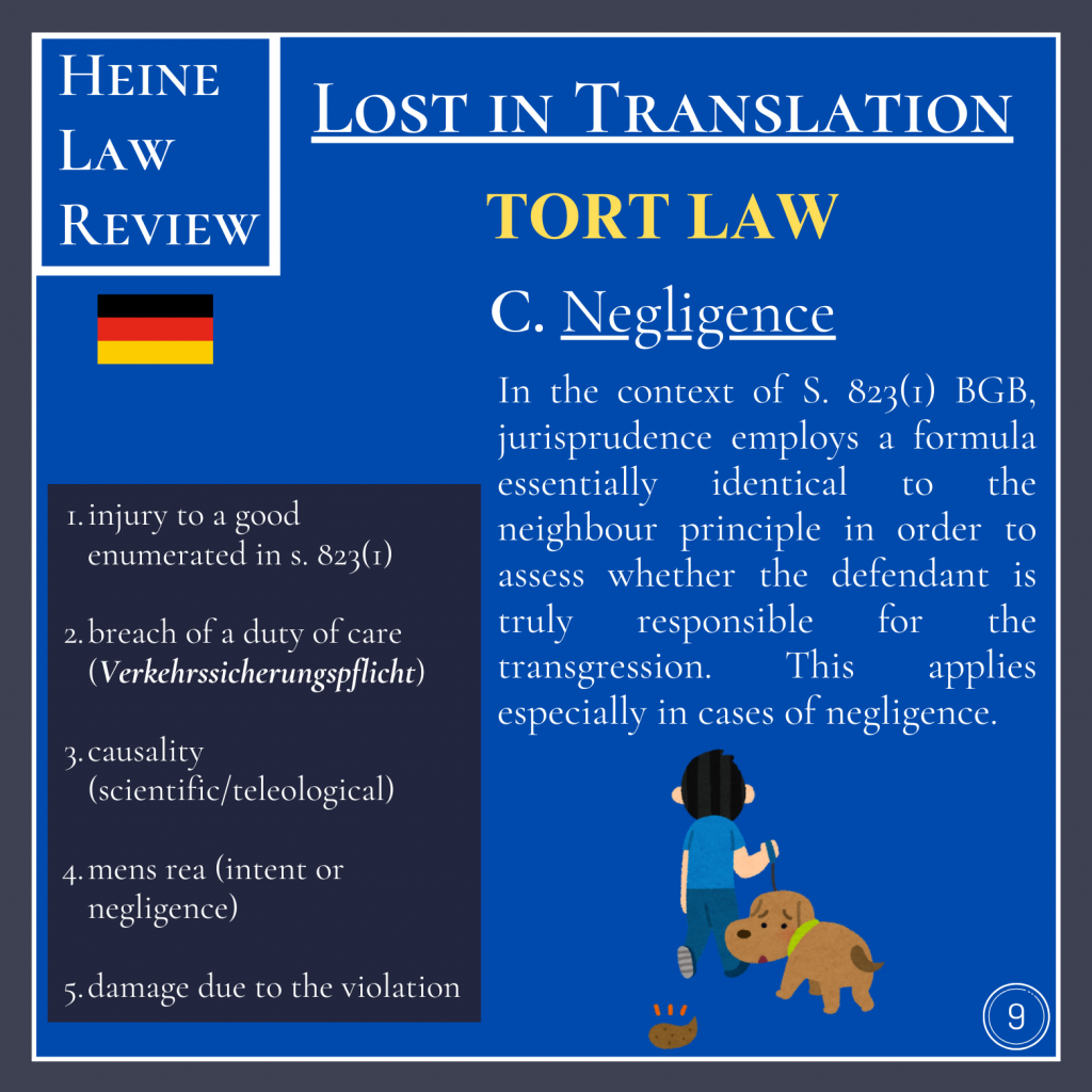 In the context of S. 823(1) BGB, jurisprudence employs a formula essentially identical to the neighbour principle in order to assess whether the defendant is truly responsible for the transgression. This applies especially in cases of negligence.